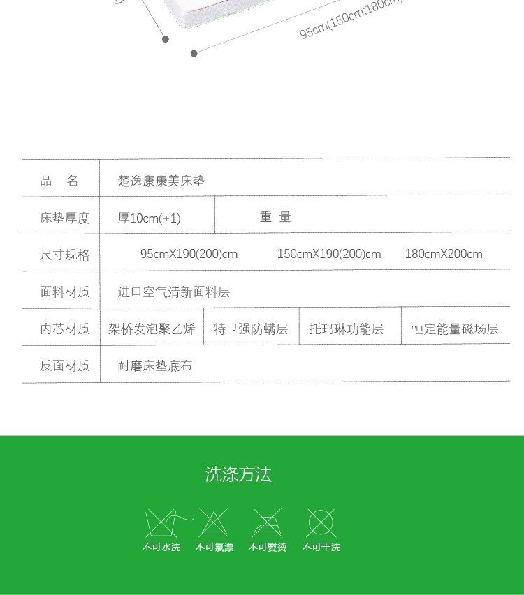 床品规格:180*200*15CM、190*150*15CM