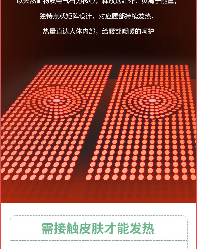 描述:16颗稀土磁石+1颗强太极磁作用于腰部,形成磁场包围圈,释放磁能量,独特点状矩阵设计,不朽情缘MG游戏对应腰部穴位均匀发热,热量直达人体内部,呵护腰部,不惧寒冷。