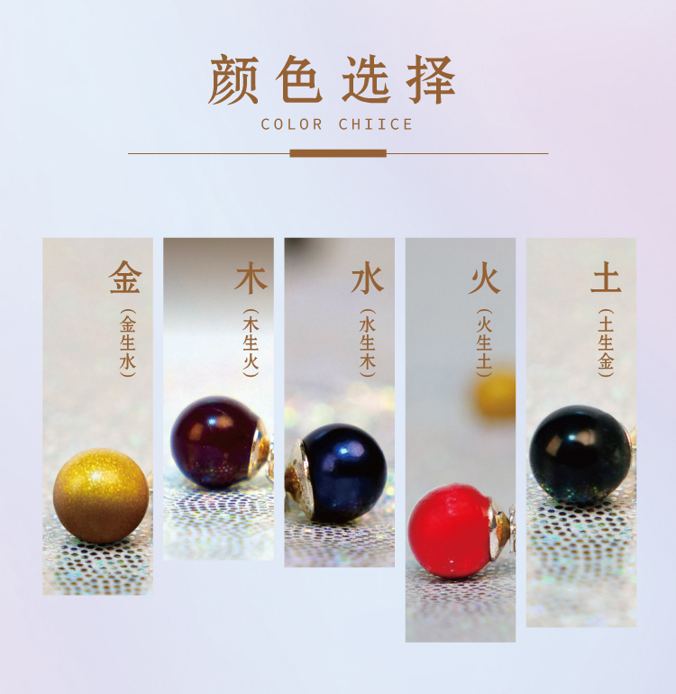 描述:珍贵的天然稀土磁石、s925银抗过敏材料,不朽情缘MG游戏时尚大气的外观设计,对应金木水火土五行设计,任意选择5种颜色